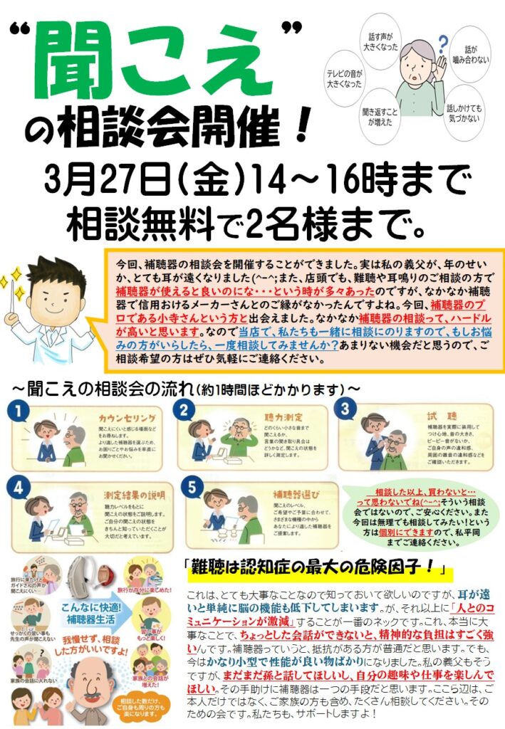 【3月27日(金)14時~】聞こえの相談会、開催します!