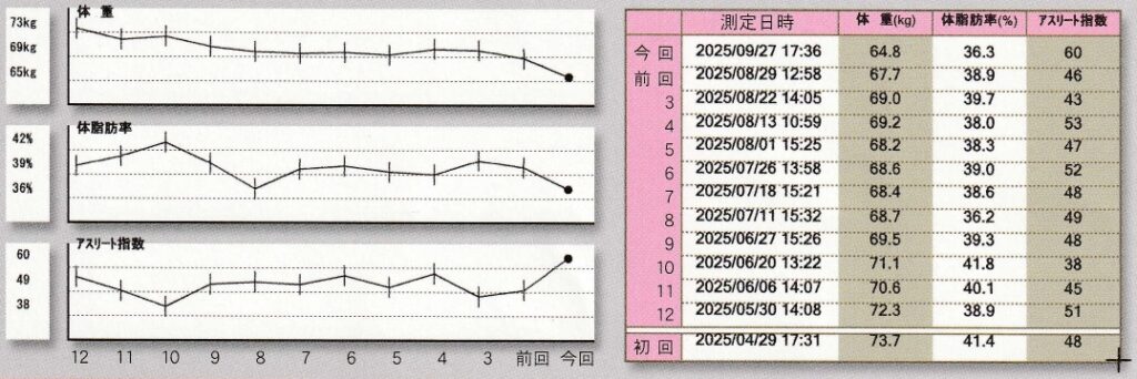 最初は良い感じで体重も落とされましたが、途中忙しくてなかなかご来店できない時期もあり、意識も下がりがちでしたが、